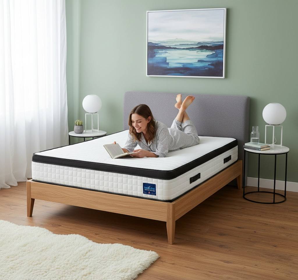 BedzOnline Memory Foam Mattress Pocket Sprung Mattress with 3D Breathable Knitted Fabric and Airy Mesh