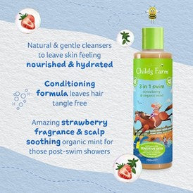Childs Farm 3 in 1 Swim - 250ML- STRAWBERRY & ORGANIC MINT.