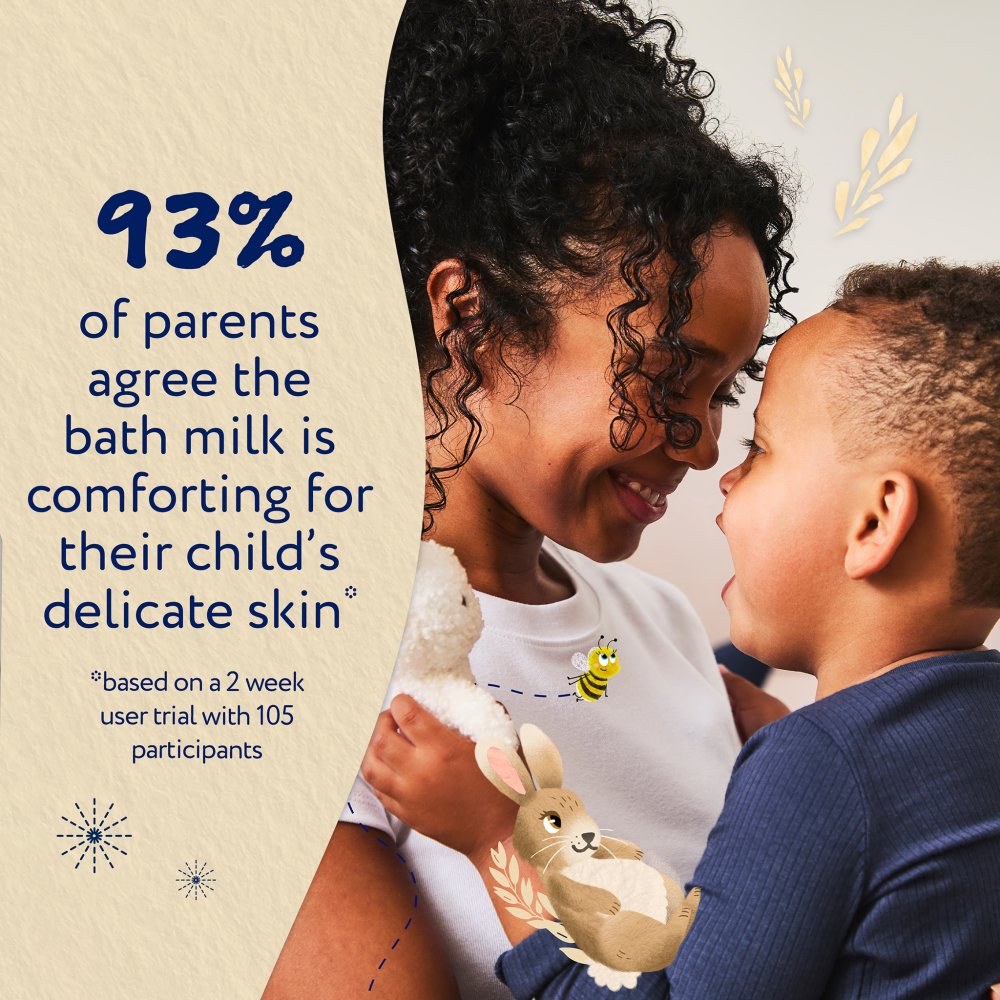 - 93% of parents agreed the bath milk is comforting for their child’s delicate skin**