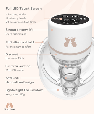 Affordable- The Fraupow Wearable Electric Pump has 4 modes and is loaded with features that ensure it keeps up with or beats other pumps, at less than half the price of the leading competition. The Fraupow Hands-Free Breast Pump fits with the other products in Fraupow's breastfeeding support system. Fraupow believes in helping mums do the hardest job, without breaking the bank.