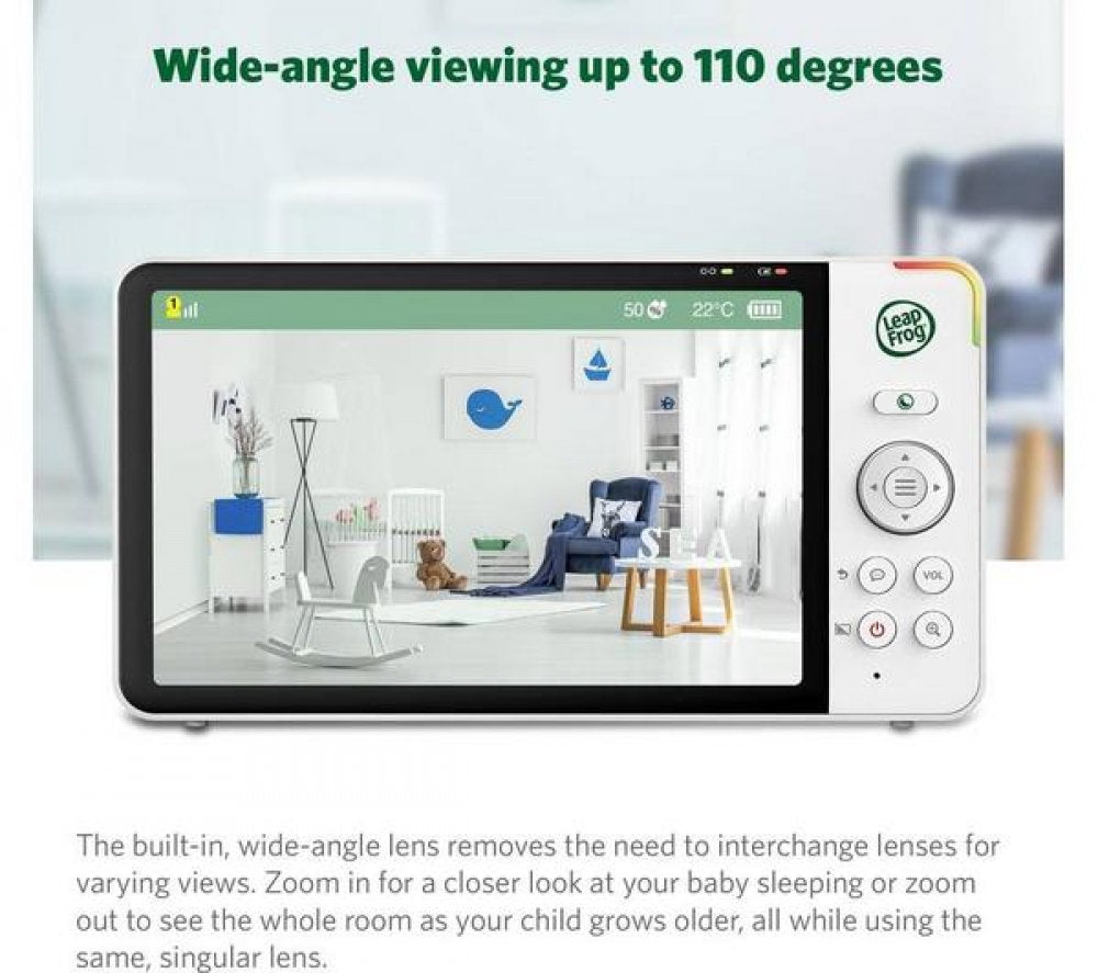 Sometimes it's hard to relax when you're not with your little one. This LeapFrog video monitor has a high definition IPS display that lets you see every little move. The advanced night vision technology is superior to traditional infrared (black and white) technology so you can see in the dark. The 360° panoramic viewing and 52° vertical viewing makes it easy to see what's going on in the room.