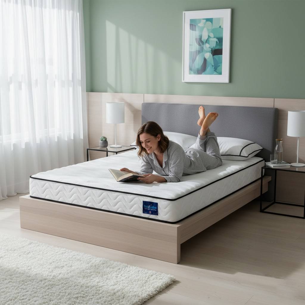 Designed with 1,000 individually nested pocket springs and high-density memory foam, this mattress evenly supports body weight for a balanced, medium-firm feel and lasting comfort.
