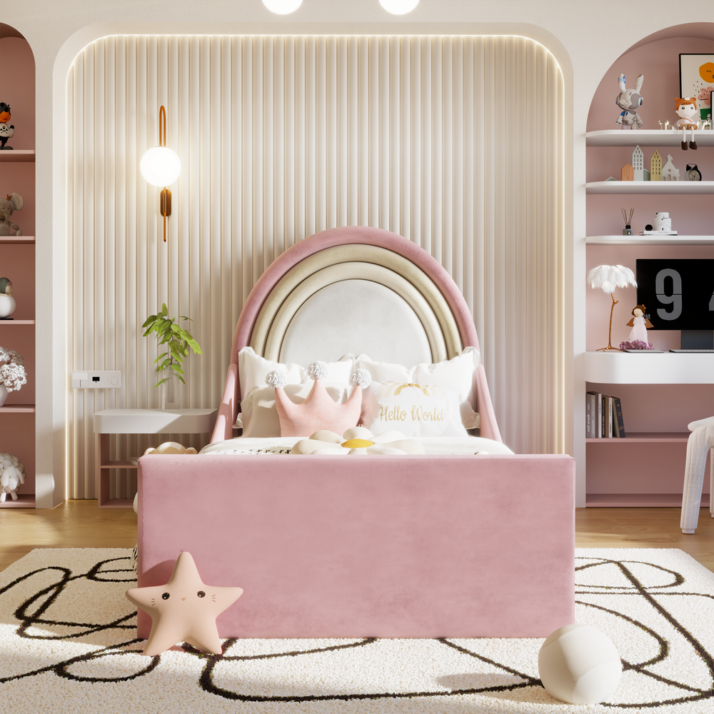 Introducing our Bubblegum Kids Bed—where comfort meets creativity! Designed with a unique curved headboard, this bed adds a touch of whimsy to any child's bedroom. Crafted from high-quality, durable materials, the Bubblegum Kids Bed ensures safety and stability while providing a cozy sleep environment. The playful design sparks imagination, making bedtime an adventure every night. Perfect for growing kids, this bed offers both style and functionality, fitting seamlessly into any décor. Easy to assemble and available in multiple colours, the Bubblegum Kids Bed is the ultimate blend of fun and comfort for your child's dream room.