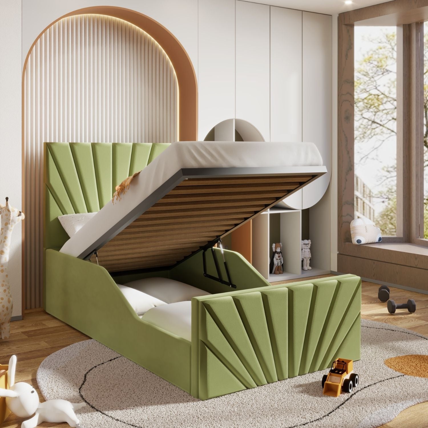 The Regal Horizon Kids Bed is a simple and versatile option for modern settings. With a clean-lined shape and large headboard, it's supported by sprung slats in the base with ottoman options available. We've upholstered it in our soft plush velvet fabric.