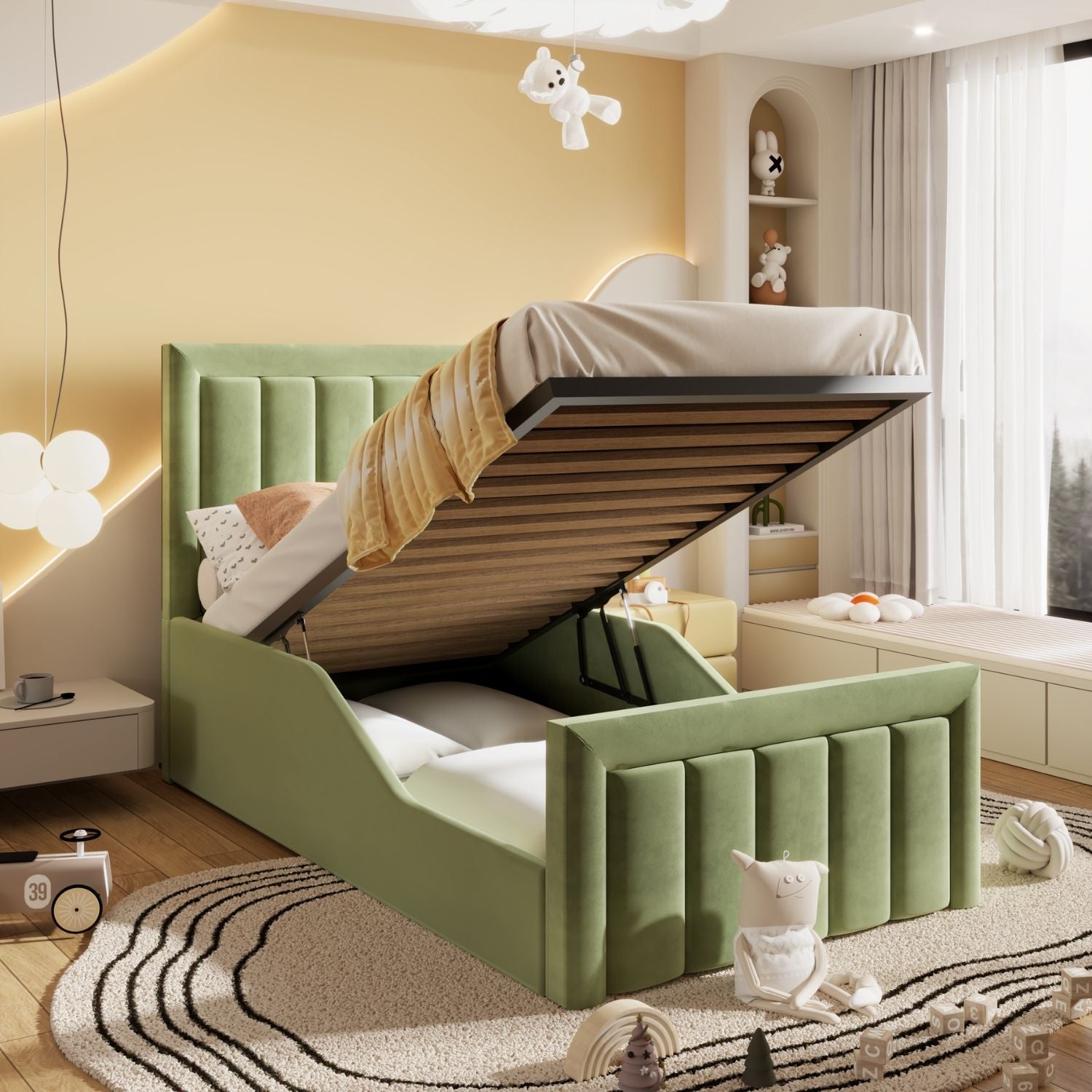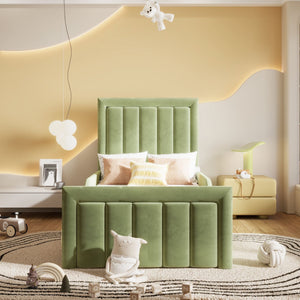 The Arthur Kids Bed is a simple and versatile option for modern settings. With a clean-lined shape and large headboard, it's supported by sprung slats in the base with ottoman options available. We've upholstered it in our soft plush velvet fabric.