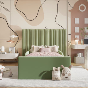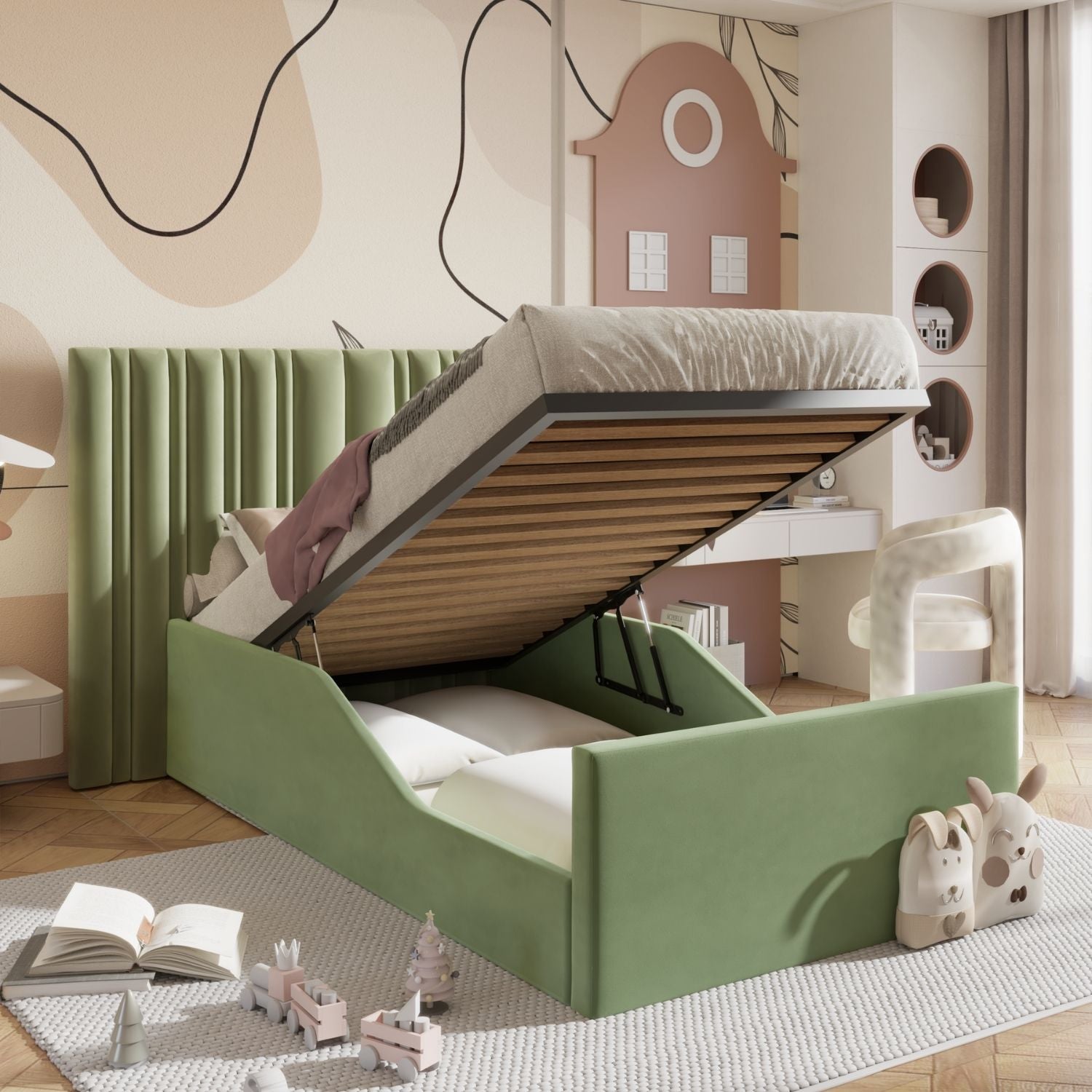 The Emerald Haven Kids Bed is a simple and versatile option for modern settings. With a clean-lined shape and large headboard, it's supported by sprung slats in the base with ottoman options available. We've upholstered it in our soft plush velvet fabric.