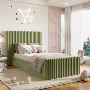 The Harper Kids Bed is a simple and versatile option for modern settings. With a clean-lined shape and large headboard, it's supported by sprung slats in the base with ottoman options available. We've upholstered it in our soft plush velvet fabric.
