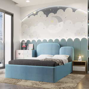 Introducing our delightful Snooze Haven Kids Bed, designed to transform bedtime into an enchanting adventure for your little ones. Crafted with safety, comfort, and imagination in mind, this bed is the perfect centerpiece for any child's bedroom. The BabyFair bed frame is a simple and versatile option for modern settings. With a clean-lined shape and large headboard, it's supported by sprung slats in the base with ottoman options available.