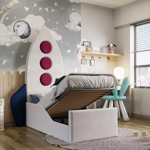 The BabyFair Up`n`Away Rocket bed frame is a simple and versatile option for modern settings. With a clean-lined shape and large headboard, it's supported by sprung slats in the base with ottoman options available. All beds we produce are manufactured in the UK to exceptionally high quality standards, ensuring quality assurance.