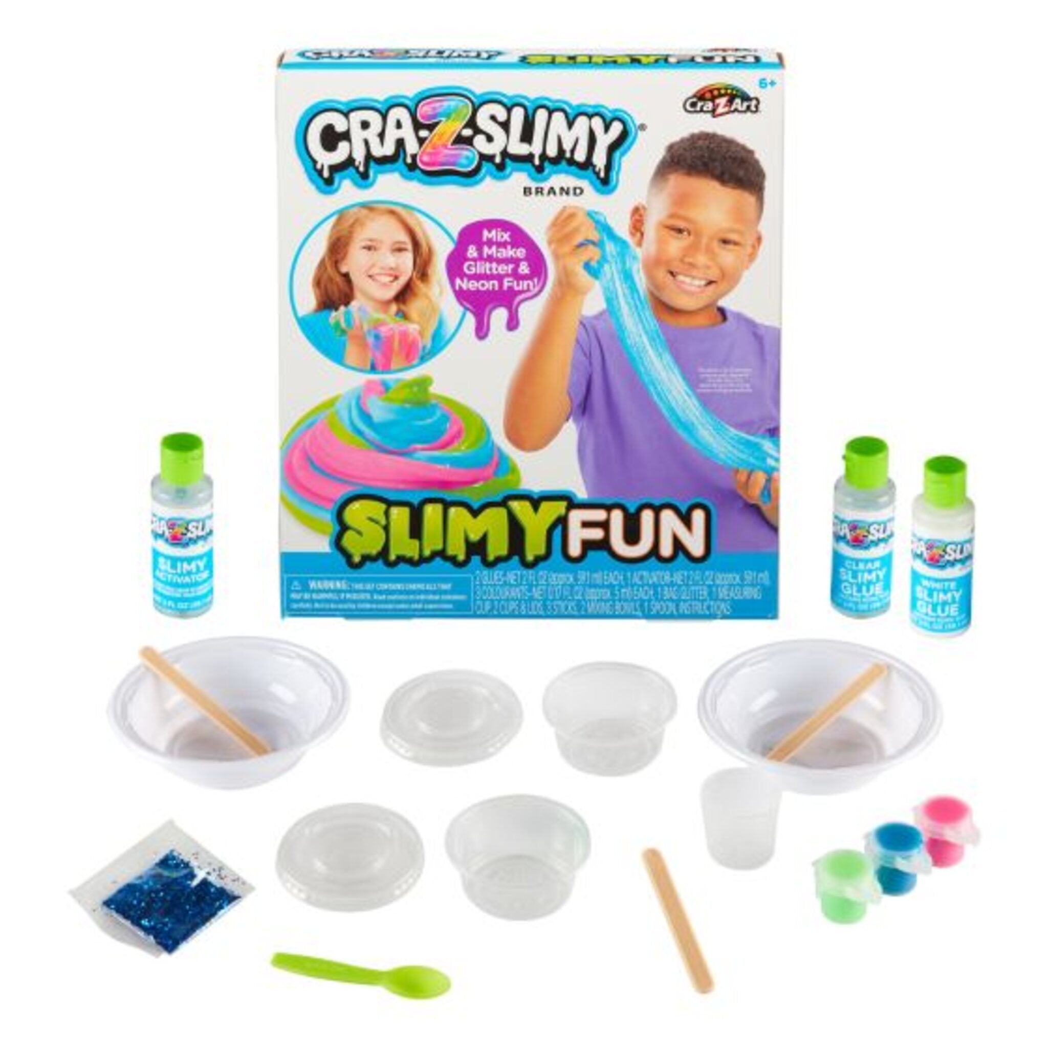 Get hands-on and creative with the Cra-Z-Slimy Slimy Fun Kit – the ultimate slime-making experience! This all-in-one kit includes everything you need to create stretchy, oozy, neon and glittery slime. Whether you're using white or clear glue, adding glitter or mixing vibrant colors, the possibilities are endless! It's simple to use, fun to make, and perfect for kids who love sensory and craft play. Designed for ages 6 and up, this kit brings hours of creative fun with safe and reusable ingredients.