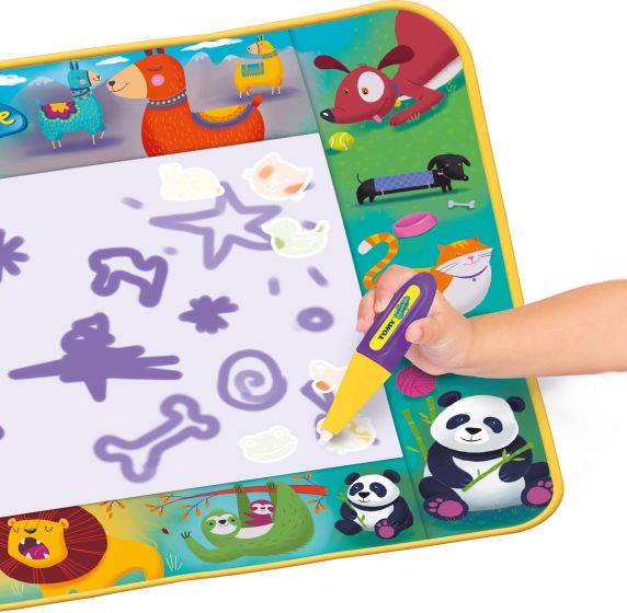 It’s magic! Kids can let their imagination run wild, and if any excess water should run off the mat, no problem – it runs clear so colouring fun could not be cleaner. When the mat is left to dry, doodles fade away, ready to play all over again. Framing your budding artist’s canvas are all kinds of exotic animals from the four corners of the world. There are polar bears and penguins, llamas and sloths, a lion, giraffe, a giant panda and more. There are even familiar pets to bring kids closer to home.