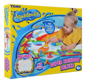 Let your creative imagination go wild with the new Super Rainbow Deluxe. Simply fill the Aquadoodle pen with ordinary tap water, run the nib over the magic mat and see the colours appear!Any water that does run off the mat, runs clear.