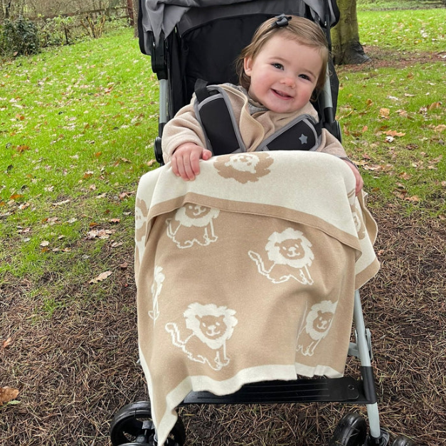 Wrap your little one in warmth and charm with our beautiful safari-inspired knitted blanket. Crafted from soft-touch cotton and featuring an adorable lion design, it’s perfect for adding a playful touch to your baby’s nursery.