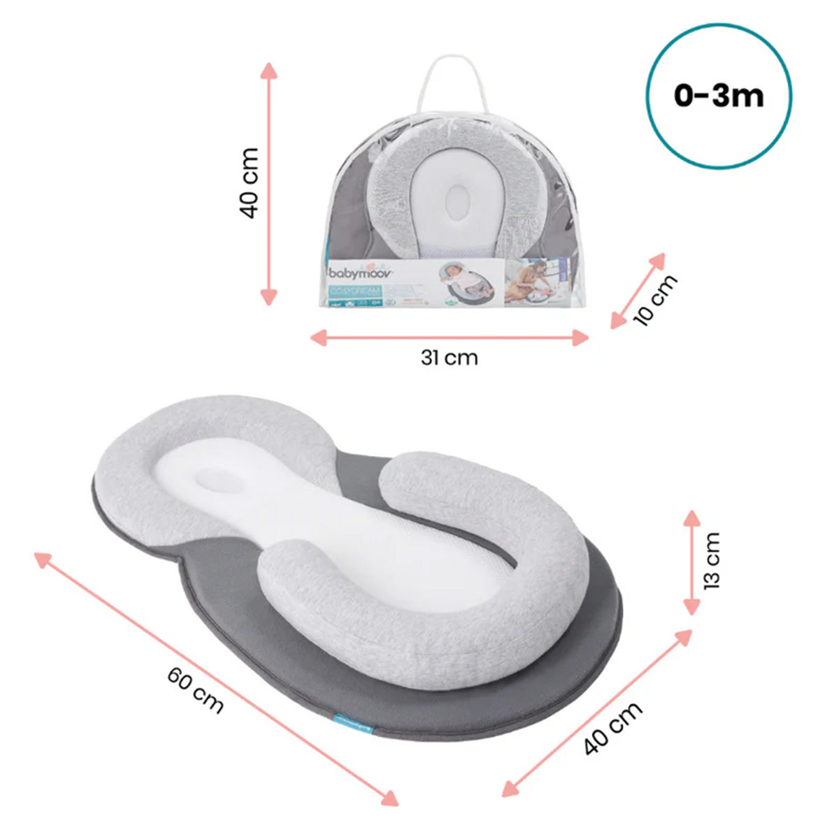 The Babymoov Cosydream is a baby support designed to prevent flat head syndrome and provide comfort for newborns in their first 3 months.