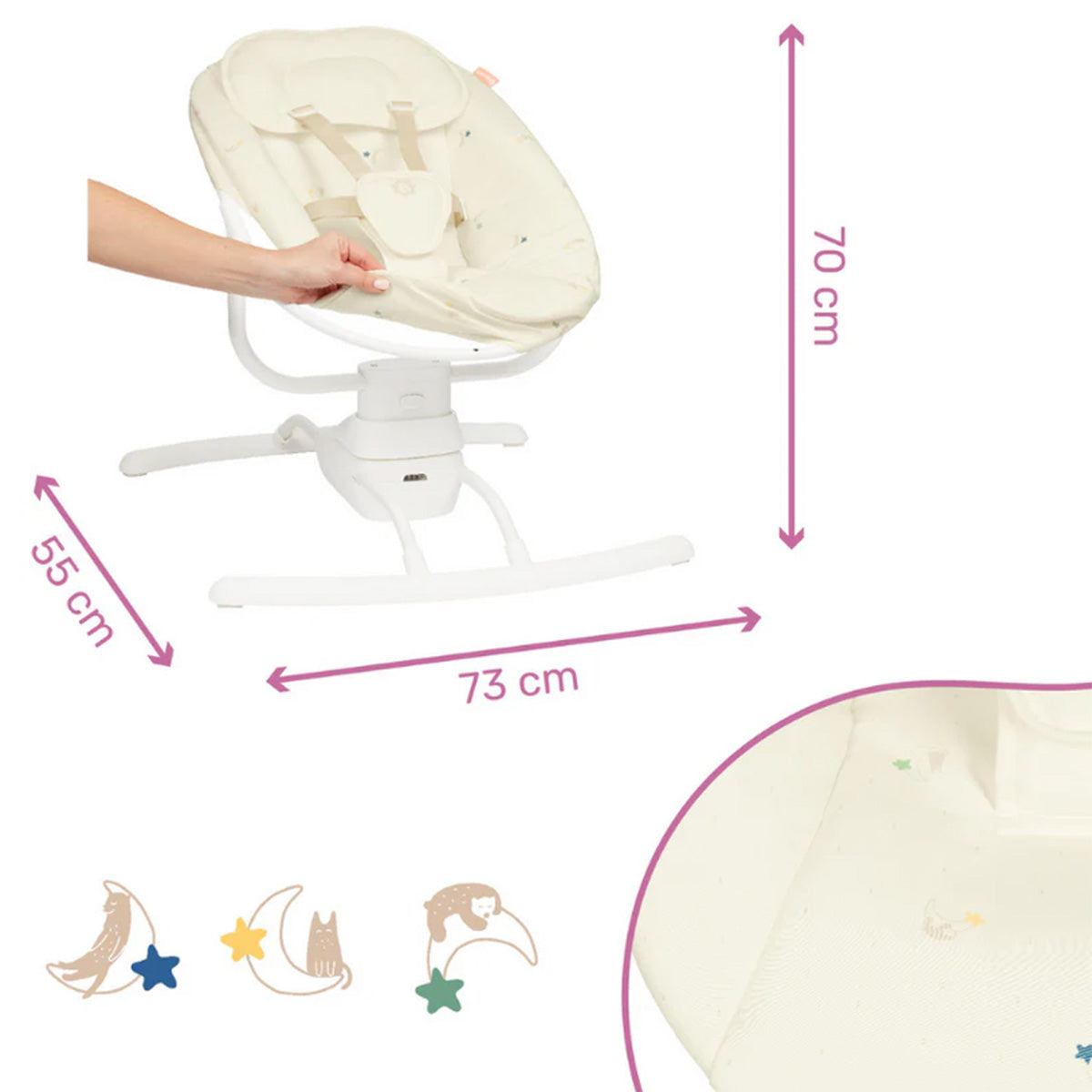 The Babymoov Swoon Motion is a comfortable, motorised baby swing that replicates the soothing movements of a parent's arms.