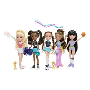 Collect all five Bratz Play Sportz dolls—Sasha, Cloe, Jade, Yasmin, and Roxxi—to assemble a full team of sporty fashion icons.