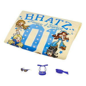 The Bratz are back with new STYLIN’ looks, and now they’re sharing their fashion passion with you! Sasha comes with a matching graphic tee you can customize to match your own style. She’s styled in a cute cami dress over a white skirt, paired with blue Mary Janes, a matching handbag, and chic shades. Her long hair features face-framing braids, and her soft-glam makeup is finished with a cool-toned lip.