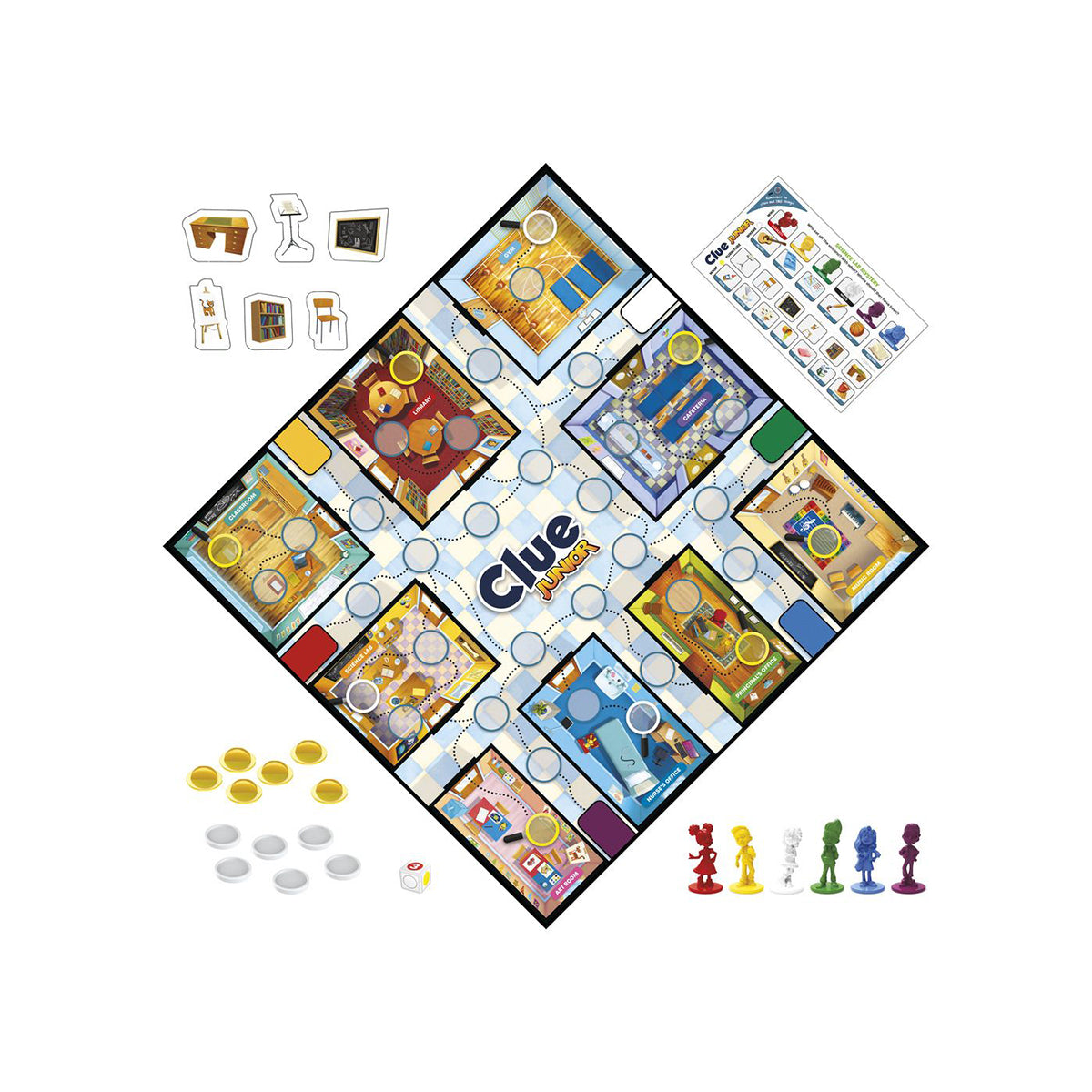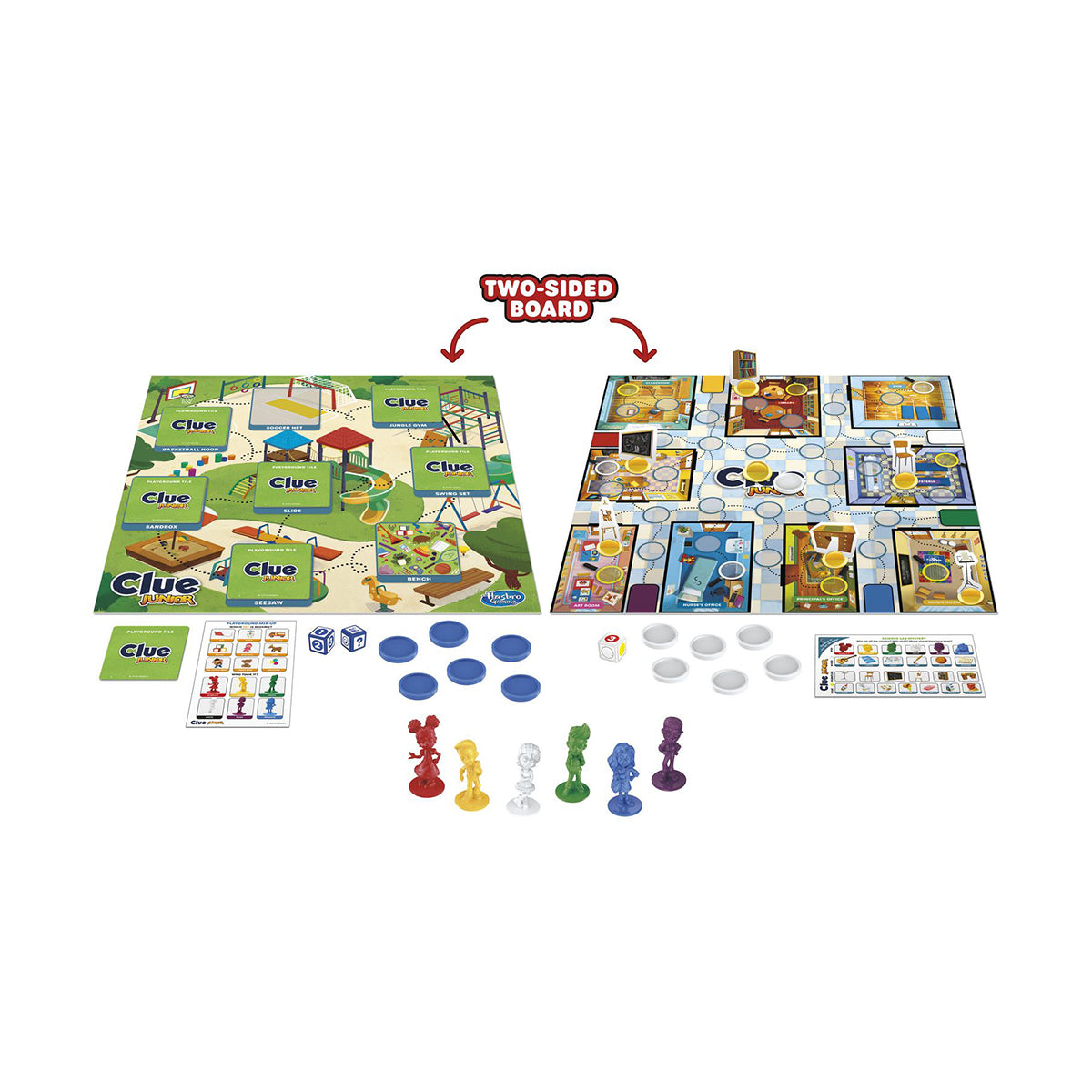 Now preschoolers can get in on the mystery-solving fun with this Clue Junior game, featuring 2 levels of grow-with-me fun! This mystery board game for kids ages 4 and up includes a double-sided gameboard for 2 levels of play. On the Level 1 side, kids work together to solve a Playground Mix-up.