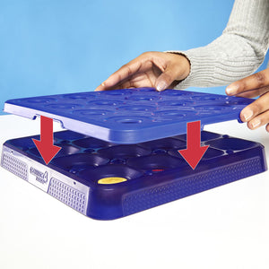 Everyone plays at once in the Connect 4 Frenzy game, an exhilarating, fast take on the original Connect 4 board game! Instead of dropping discs, players go for 4 in a row by bouncing them off the table and into spots on the grid. If a team’s disc lands in an opponent’s spot, they get to steal it! In this unpredictable game, the lead can change within seconds, as players sink discs, swipe spots, and sabotage opponents.