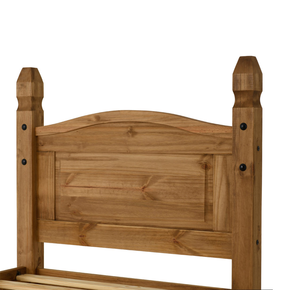 The Corona Mexican single bed is a traditional style bed that has an authentic ethnic appeal. The bed features carved wooden posts on both the head and footboard to give it extra charm. This bed is perfect for the traditional style country home.
