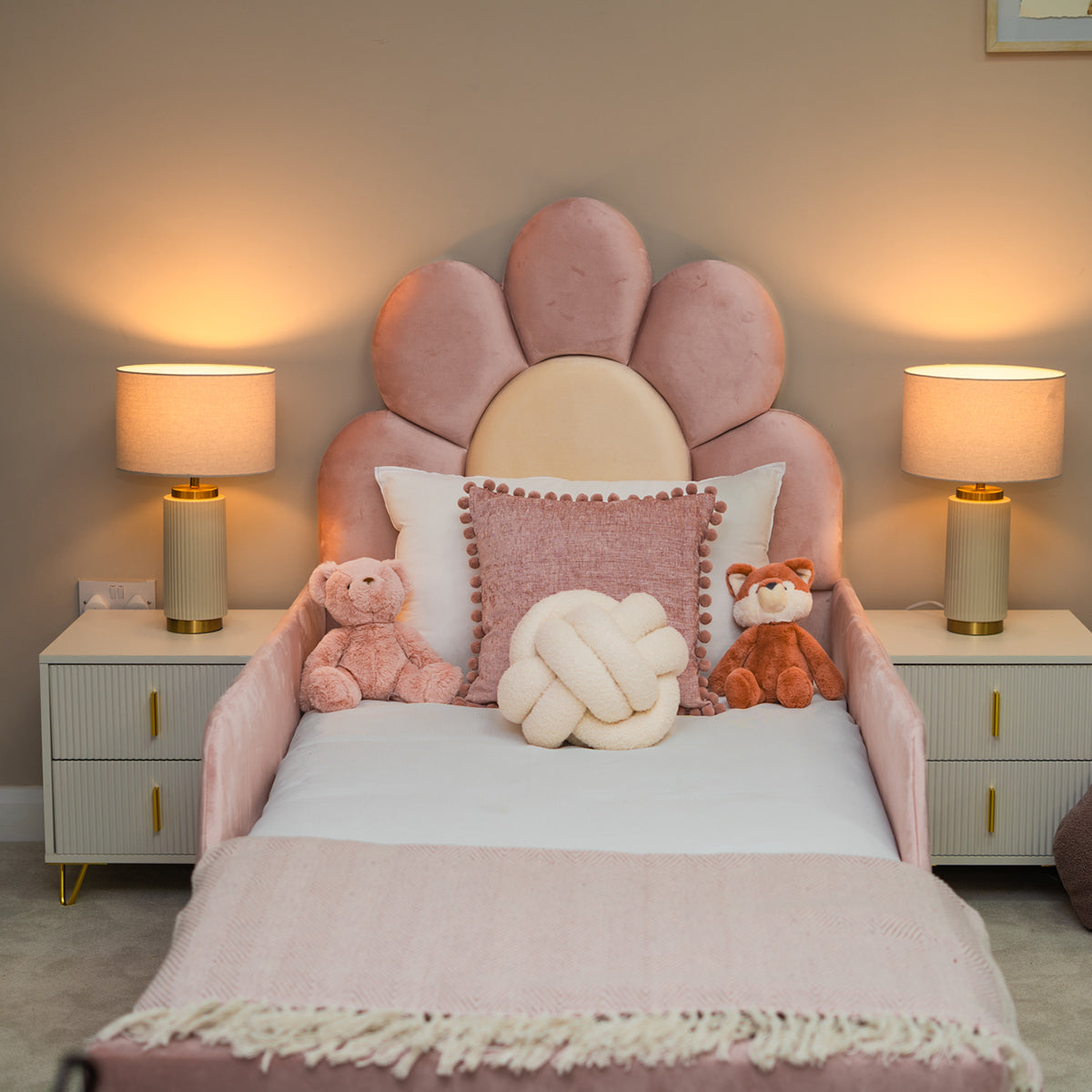 The Daisy Flow Kids Bed brings a touch of springtime joy to your child's room with its delightful, flower-inspired headboard and soft, inviting upholstery. This charming bed creates a cheerful and comfortable sleep space, perfect for little ones who love nature and sweet dreams.