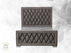 The Diamond Bed Frame is handmade and has been crafted with a robust, strong internal frame which is finished with central support legs and a durable wooden slatted base, to give extra support and comfort to your mattress. The wide range of the most luxurious fabrics, studs and feet for you to choose from, allowing you to design the perfect bed frame you have always wanted. Needing extra storage? Look no further, we also given you the option to upgrade your standard bed frame to an ottoman storage bed, as shown on the images, ideal for keeping belongings neatly away. Please be aware, due to the sheer size of the headboard and foot end, this may not fit into all properties with a narrow staircase/hallway that have tight corners or high banisters.