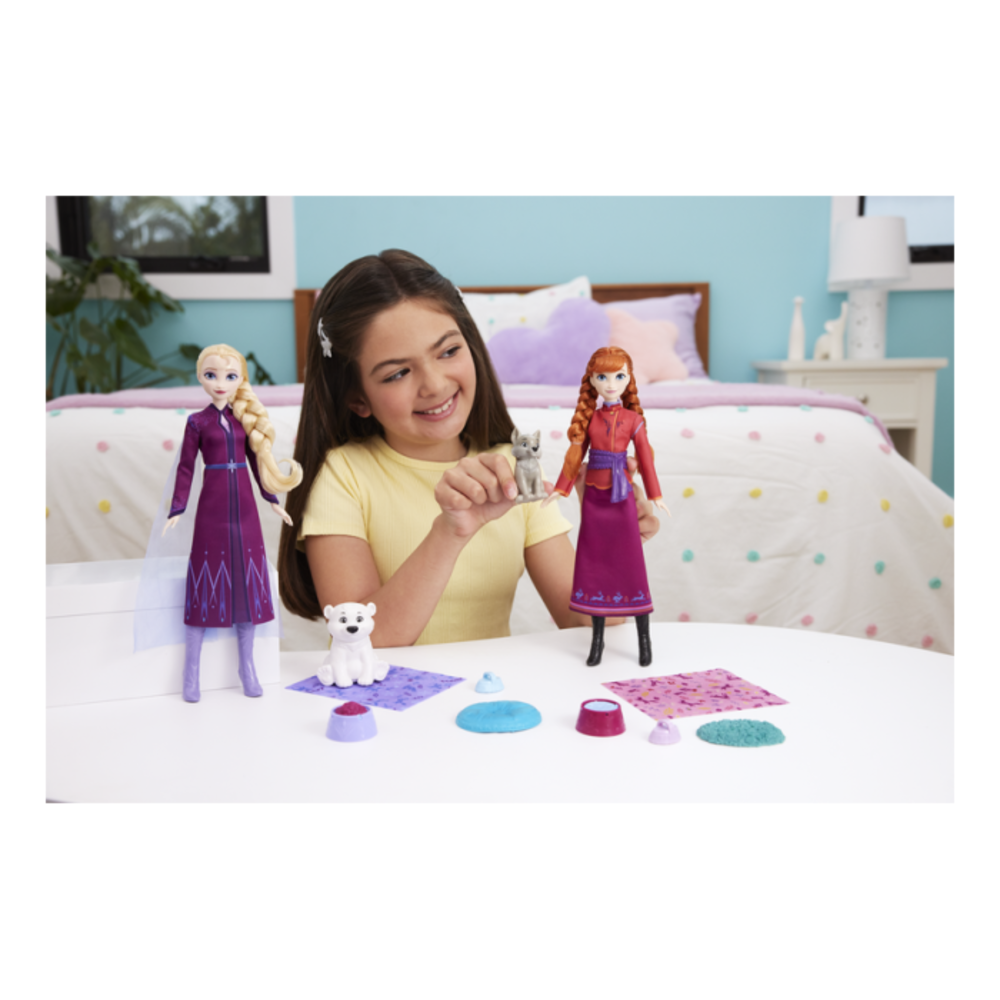 Step into a magical Winter Wonderland with Elsa and her adorable polar bear cub! Inspired by Disney Frozen and the Animals of Arendelle: Lost and Found short-form videos, this nurturing playset invites kids to imagine heartwarming adventures as Elsa cares for her furry friend. The set includes a posable Elsa fashion doll in her signature braid and removable purple outfit, a polar bear cub figure, and four themed accessories to help care for the animal companion. With enchanting details and fun features like the flipping food-and-water bowl, this set makes playtime truly magical.