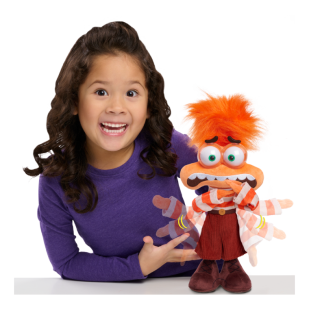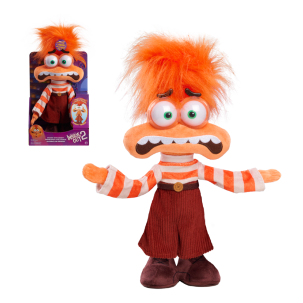 Help little ones explore emotions with the Disney and Pixar Inside Out 2 Shaking with Anxiety Feature Plush. Inspired by the hit sequel, this soft and interactive plush brings the character Anxiety to life with shaking movements, phrases, and expressive details. Kids can twist her tuft of red hair to activate fun shaking action while she speaks memorable lines like, “Are they talking about us?!” Perfect for imaginative play, emotional learning, or snuggly comfort, Anxiety is a unique plush companion that encourages conversations about feelings.
