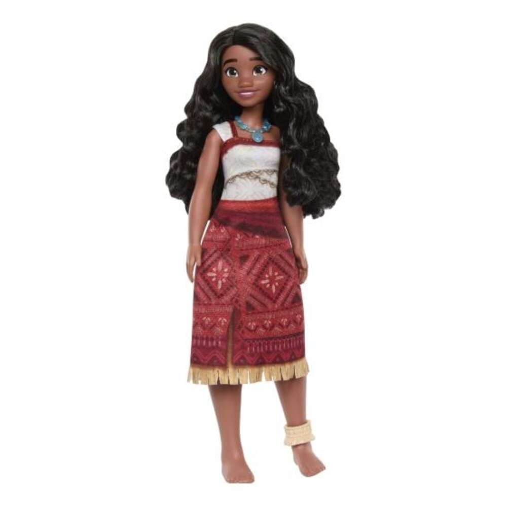 Inspired by Disney Moana 2, this fashion doll invites kids to imagine bold ocean voyages and exciting new adventures! Moana is dressed in her signature adventure outfit from the film, complete with necklace and anklet accessories. With long, wavy hair and poseable arms, head, and legs, this doll is ready to set sail on any journey. Pair her with Loto (sold separately), Moana’s brilliant engineer companion, for even more storytelling fun.