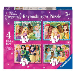 Release your inner princess and embark on a magical journey with your favourite Disney Princesses: Cinderella, Rapunzel, Belle, Tiana, Mulan, Jasmine, Pocahontas, Merida, Moana, Ariel, Aurora, and Snow White. This 4-in-a-box set contains puzzles with 12, 16, 18, 20, and 24 pieces, making it perfect for families with multiple children or for playgroup environments.