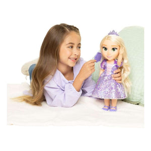 For everyone who dreams of adventure, there’s a Disney Princess to inspire courage, kindness, and imagination. Out of her tower and ready for adventure, the beautiful Disney Princess My Friend Rapunzel doll is dressed in her iconic purple and pink gown with a shimmering platinum holofoil print skirt. With her long golden hair, Rapunzel is the perfect companion for magical journeys. Celebrate Disney 100 Years of Wonder and let your imagination soar!