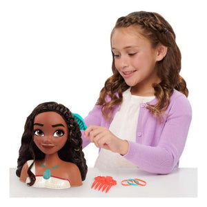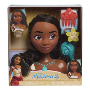 Get ready for hair-tastic fun with the Disney Princess Moana 2 Styling Head! This 8-inch styling head comes with 7 accessories, including a hairbrush, decorative comb, and 4 elastic hair bands. Kids can create updos, breezy ponytails, or long, flowing waves, encouraging imaginative play while developing independence, self-confidence, and motor skills. Perfect for tropical role-play fun, it can be combined with other Disney Princess styling heads to create a chic salon experience.