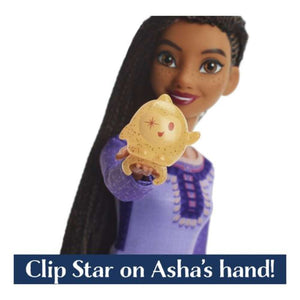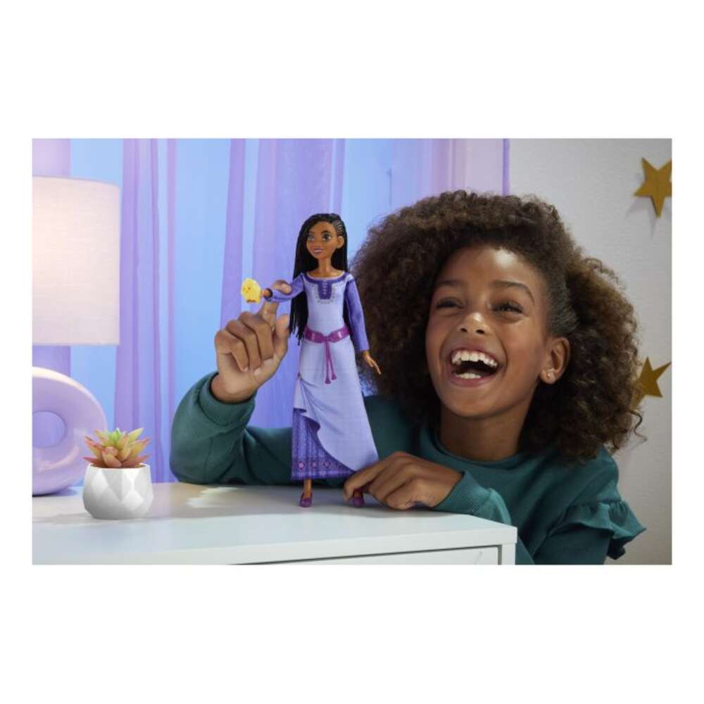 Bring the magic of Disney’s Wish to life with the Singing Asha of Rosas doll! Press her hand to hear Asha sing her enchanting song “This Wish” and let your child join in on the musical fun. Dressed in a removable outfit and shoes, with soft braided hair, this doll is perfect for imaginative play and storytelling adventures.