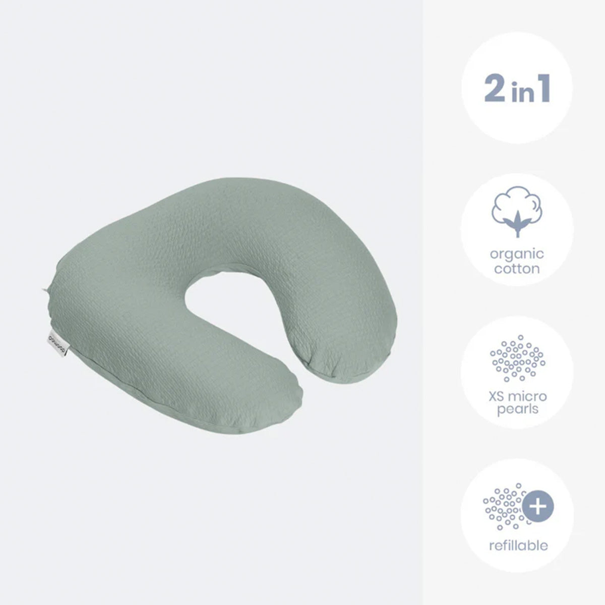The Babymoov Doomoo Softy is a versatile nursing and support pillow designed to provide comfort for both you and your baby during feeding and playtime. Made with soft organic cotton and filled with silent microbeads, it can be used for breastfeeding, bottle feeding, or supporting your baby in a seated position. The Softy is compact, portable, and features a removable, machine-washable cover.