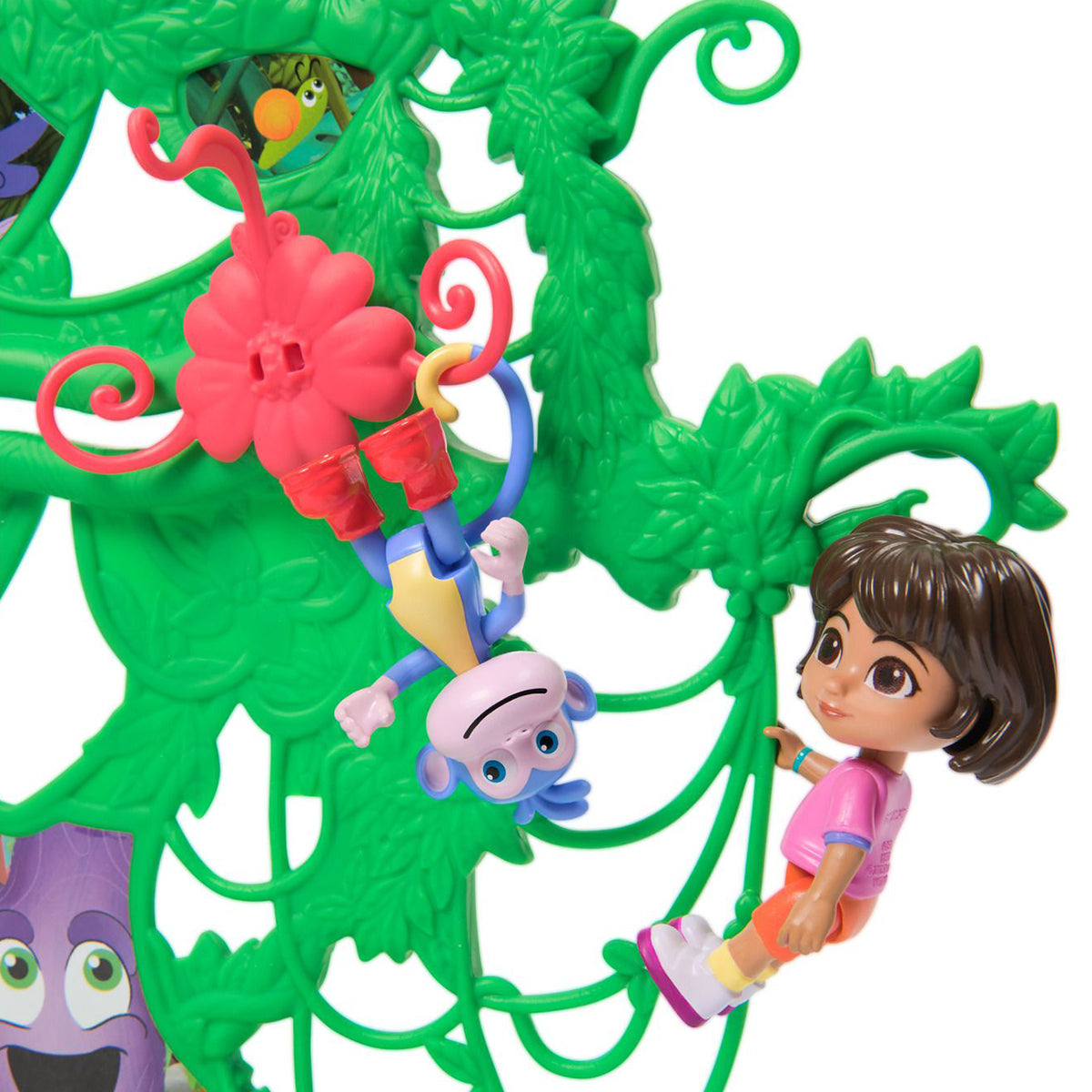 Outside, the figures can swing on the "Jungle Vine," cross the "Wobbly Bridge," and much more. Inside, explore multiple play areas, decorate with doll house furniture & activate sounds & bilingual phrases with the button in the living room! Step into the world of Dora, with toddler toys that will make magical birthday, Christmas, & holiday gifts for girls & boys that love pretend play toys, like dolls & accessories, dollhouse furniture & muñecas para niñas.