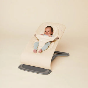 The Ergobaby 3-in-1 Evolve Bouncer grows with baby from newborn to infant to toddler. Starting from day one, baby will experience comfort from head to hips thanks to the ergonomic newborn insert developed with guidance from a pediatric orthopedist.