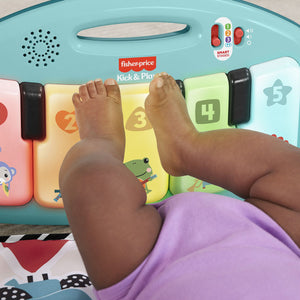 Get your little one moving, grooving (and learning) with the Glow and Grow Kick & Play Piano Gym from Fisher-Price. This soft baby activity mat features a repositionable high contrast toy arch with 10 linkable toys. The removeable piano with 5 light up keys features a multi-coloured light show and has 4 musical settings that grow with baby from newborn to toddler.