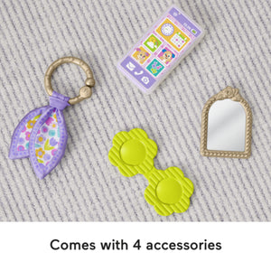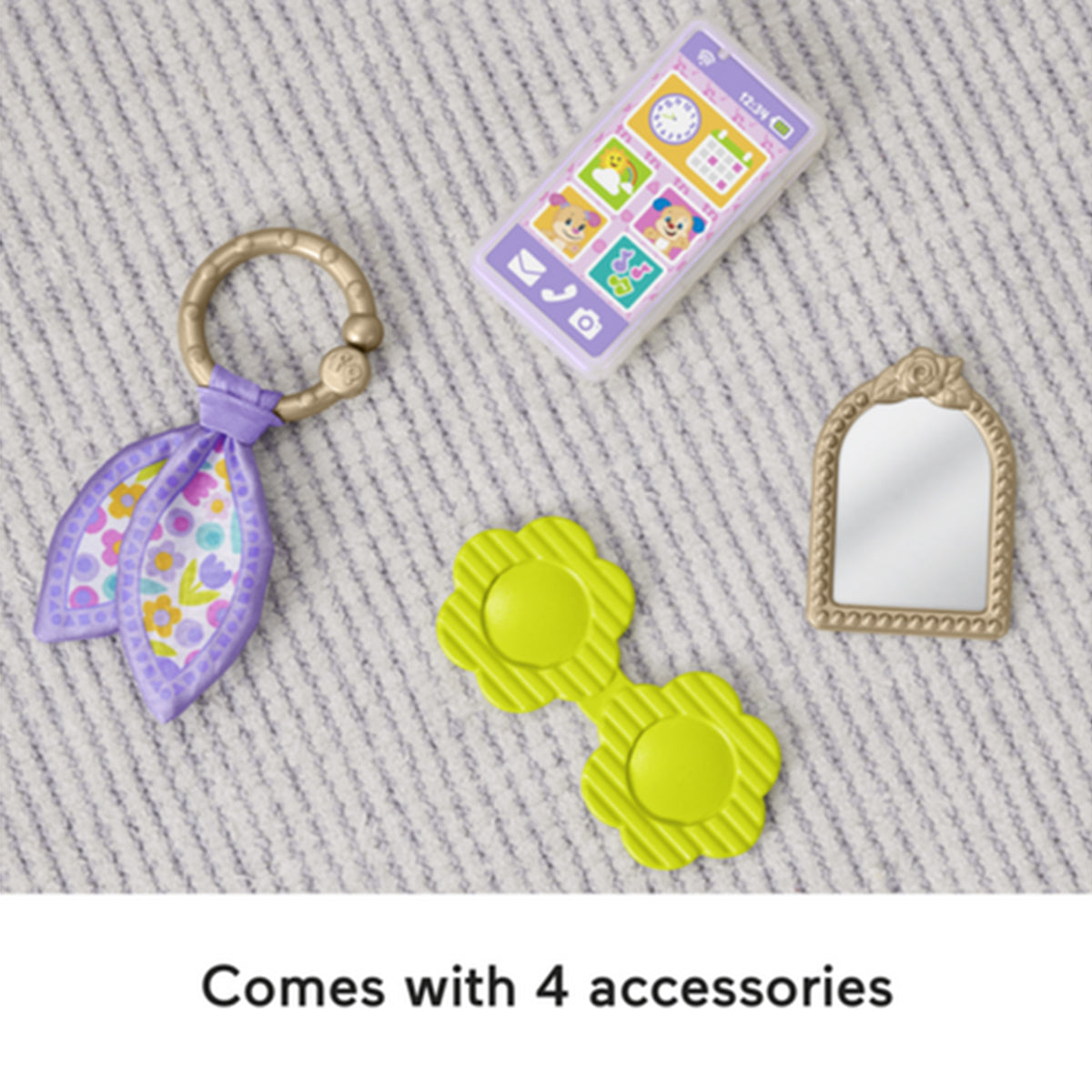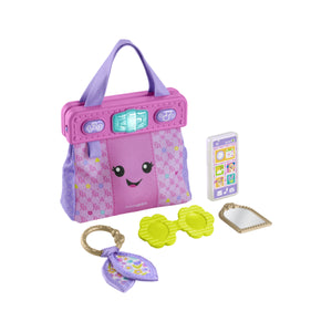 Your baby will be ready for adventure with the Laugh & Learn Going Places Learning Purse from Fisher-Price. This interactive toy bag features multi-colour lights, fun songs and phrases that introduce colours, shapes, counting, and more. Toddlers can press the buttons for lights and music, open the purse for fun put-and-take play, or use the 4 accessories for stylish role-play. Comes with cell phone rattle, self-discovery mirror, sunglasses teething toy, and crinkle scarf. Colors and decorations may vary.