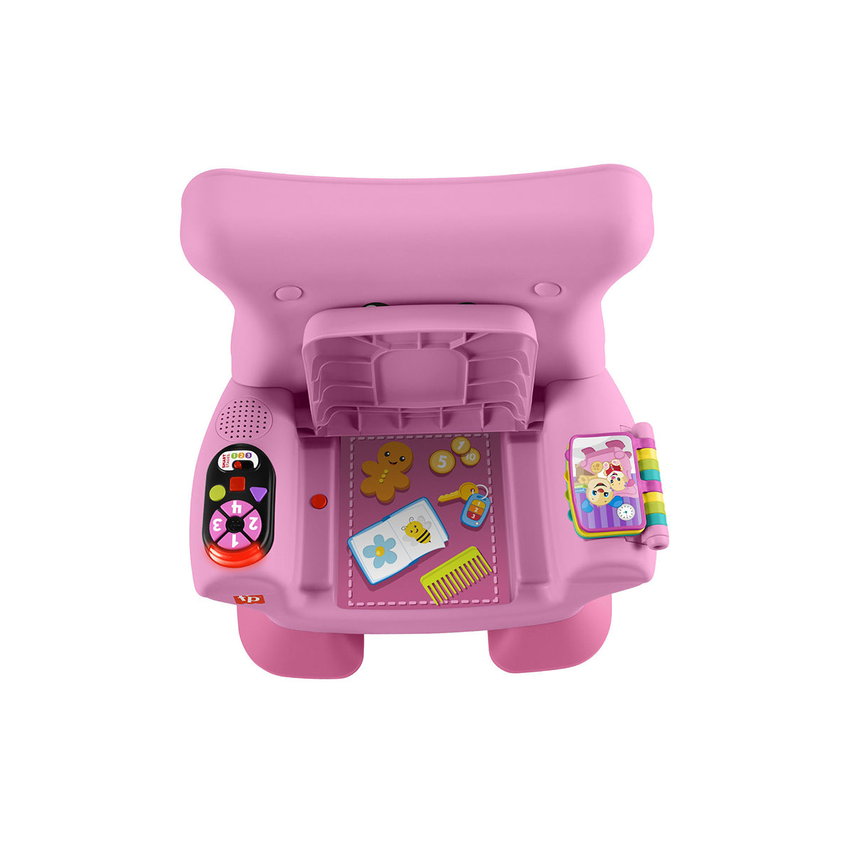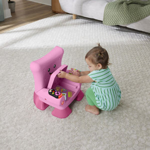 The Laugh & Learn Smart Stages Chair from Fisher-Price is your baby's very own spot to get cozy, play and discover. The interactive seat knows when little ones sit down or stand up, so the chair can respond with fun songs & phrases! As they take a seat, babies and toddlers have lots of fun activities to explore, including a light-up remote with number & shape buttons, a flipbook, and a lift-up cushion with hidden surprises.