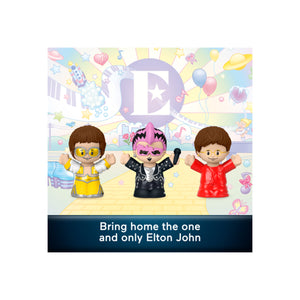 Ladies and gentlemen, celebrate Elton John with this special edition Little People Collector figure set from Fisher-Price. The set features the superstar reimagined in signature Little People style, highlighting three decades of Elton’s career: the 1970s, with a vibrant gold jacket with white fur epaulettes; the 1980s, with a glitzy black suit covered in silver stars plus a pink mohawk wig; and the 1990s, with a chic, monochromatic shiny red ensemble.