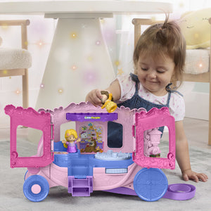 Toddlers can walk and roll into enchanting Disney Princess stories with this Little People Pull-Along Musical Carriage vehicle playset from Fisher-Price. Styled like a classic horse-drawn carriage, this toy vehicle opens to reveal a decorative playset with Disney Princess-inspired music and sounds plus multiple play areas where kids can act out stories with Disney Princess Belle and Rapunzel figures.