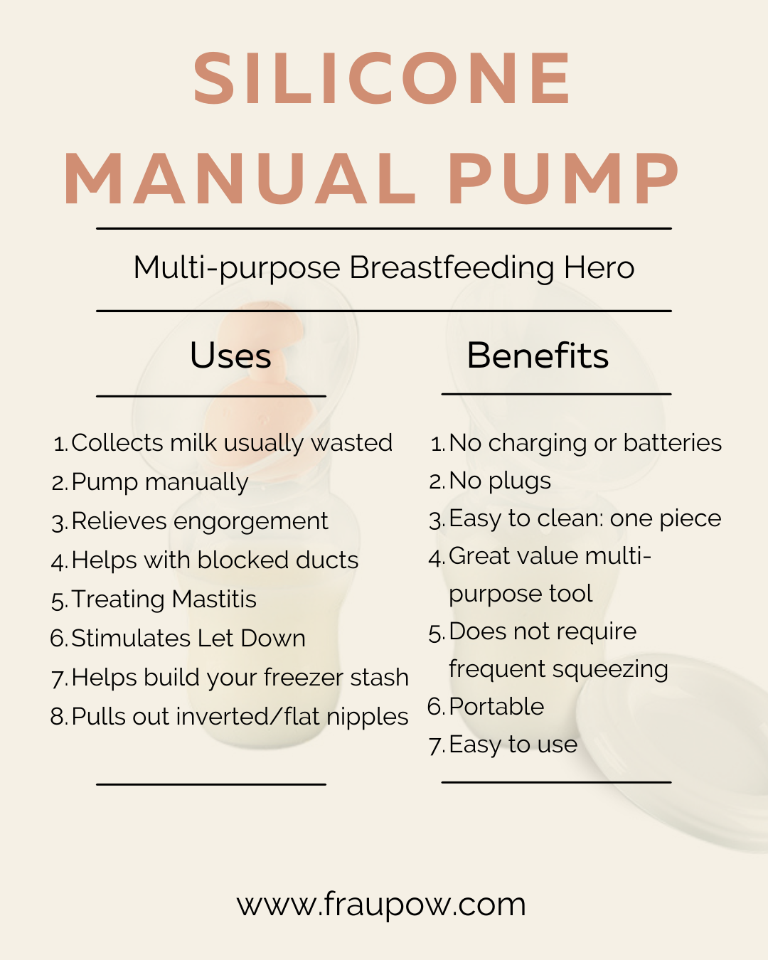 Convenient- A lightweight and handy pump to add to your pumping paraphernalia. This little wonder can be used as your only pump, or can be great to tuck into your bag as an alternative to your electric pump when you're out and about and you just need something simple to help release some milk.