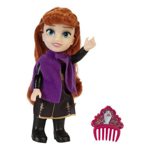 Continue the adventure with Disney’s Frozen 2 Petite Adventure Anna Doll! Perfectly petite for on-the-go fun, Anna comes dressed in her signature outfit from the film, complete with a removable skirt, cape, and boots. Kids can pose Anna to recreate favorite moments from Frozen 2, and enjoy extra hair play with the included Olaf comb to style her classic red hair. This petite doll is ideal for imaginative play and adventures anywhere!