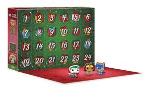 Count down to your favorite holiday, or any special occasion, with the DC™ Super Heroes 24 Day Advent Calendar! Open the tiny doors to reveal 24 unique Funko Pocket Pops! featuring some of your most beloved heroes and villains dressed in holiday ensembles or styled in gingerbread form! Who will be the next to join your DC super heroes collection? Pocket Pop! figures vary in height depending on character. The maximum figure height is 2-inches tall.