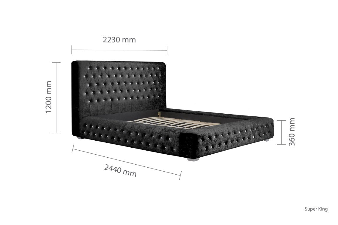 The Grande features a stunning crushed velvet fabric that is a standout piece of furniture in any bedroom.