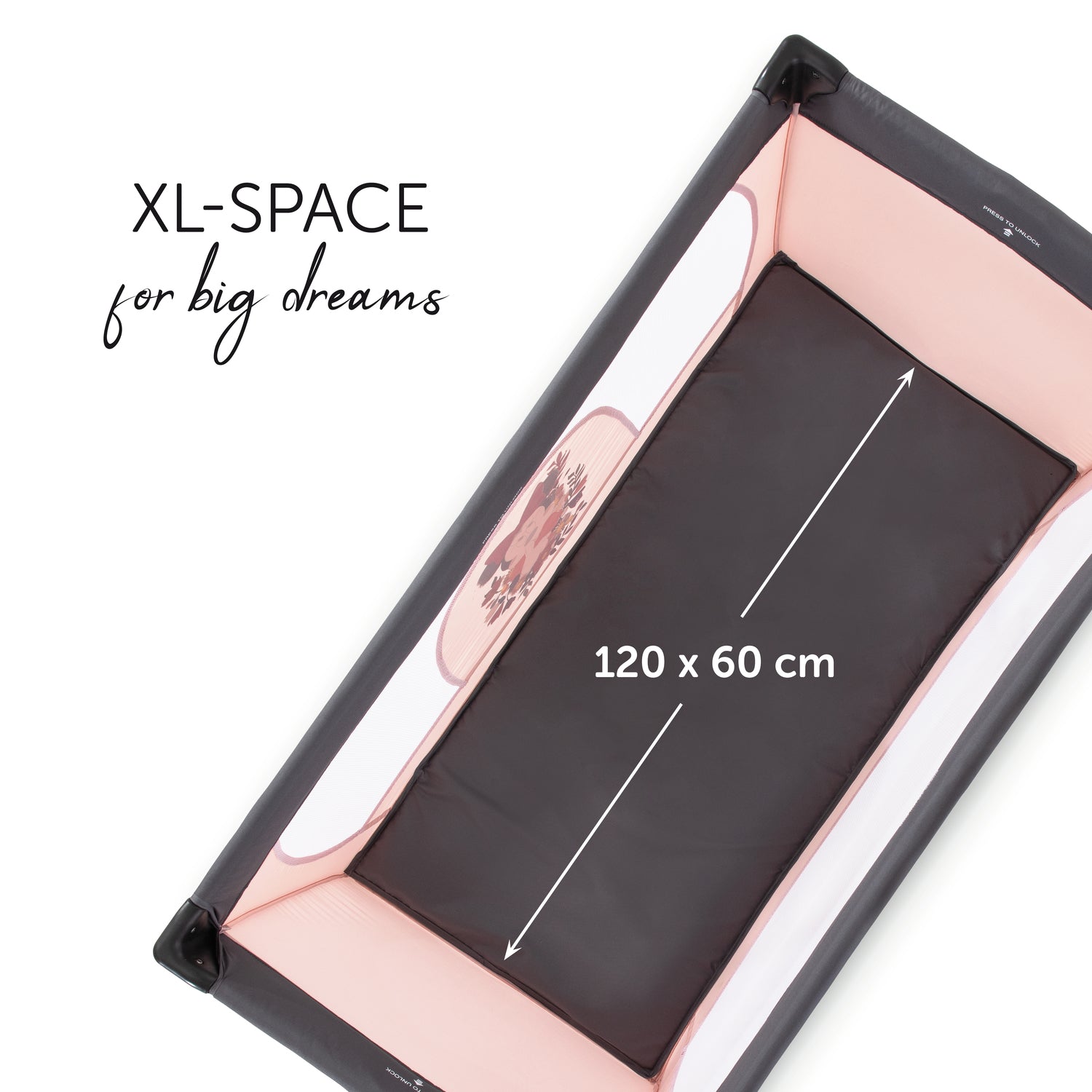 Safe sleeping & playing. In this bed, your little treasure will sleep soundly on any trip just like at home - right from birth. The large viewing windows made of net fabric guarantee an optimum air circulation, and give your little offspring the possibility of seeing you at any time. In addition, the large surface of 120 x 60 cm makes of Dream N Play also the perfect playpen. Your ray of sunshine is sure to feel at ease in here, while you take care of the house hold or while you have a rest.