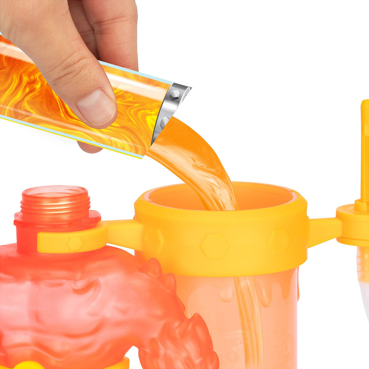 Add water, pump the figure's body full of goo, and watch as Blazagon is brought to life! Remove him from the hero creator, and he's ready for stretchy, squishy action! Blazagon's body can be stretched up to three times its size, so make sure to unleash a STRETCHY attack! Endless adventure awaits! Mix, Fill, and Create with the all-NEW Heroes of Goo Jit Zu Hero Creator. There are two characters to collect, including Blazagon & Thrash!