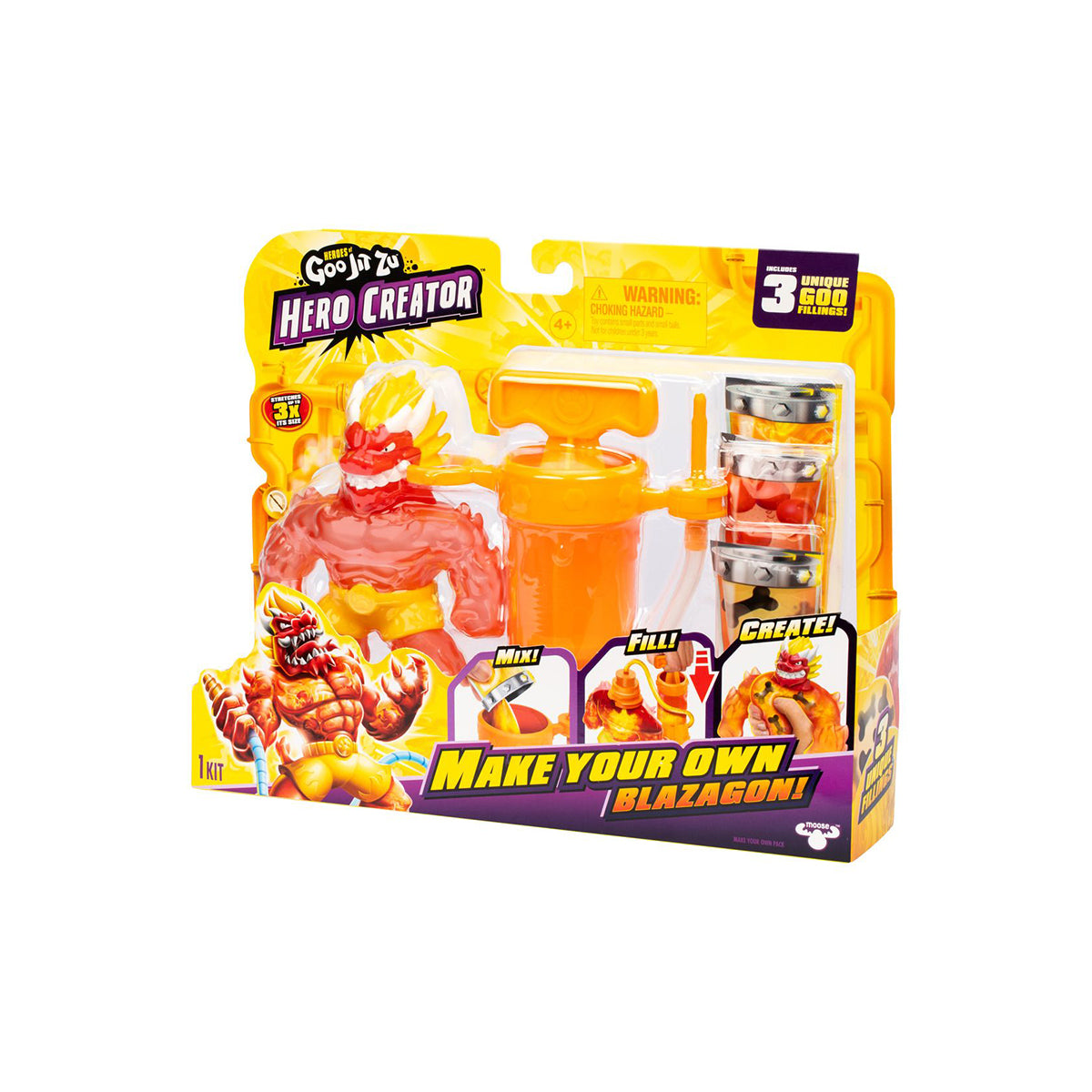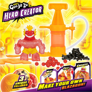 Introducing the NEW Heroes of Goo Jit Zu Hero Creator! For the very FIRST TIME, your child has the power to create their own Blazagon Action Figure! Attach Blazagon onto the special Creator Chamber and fill it with 3 unique fillings!
