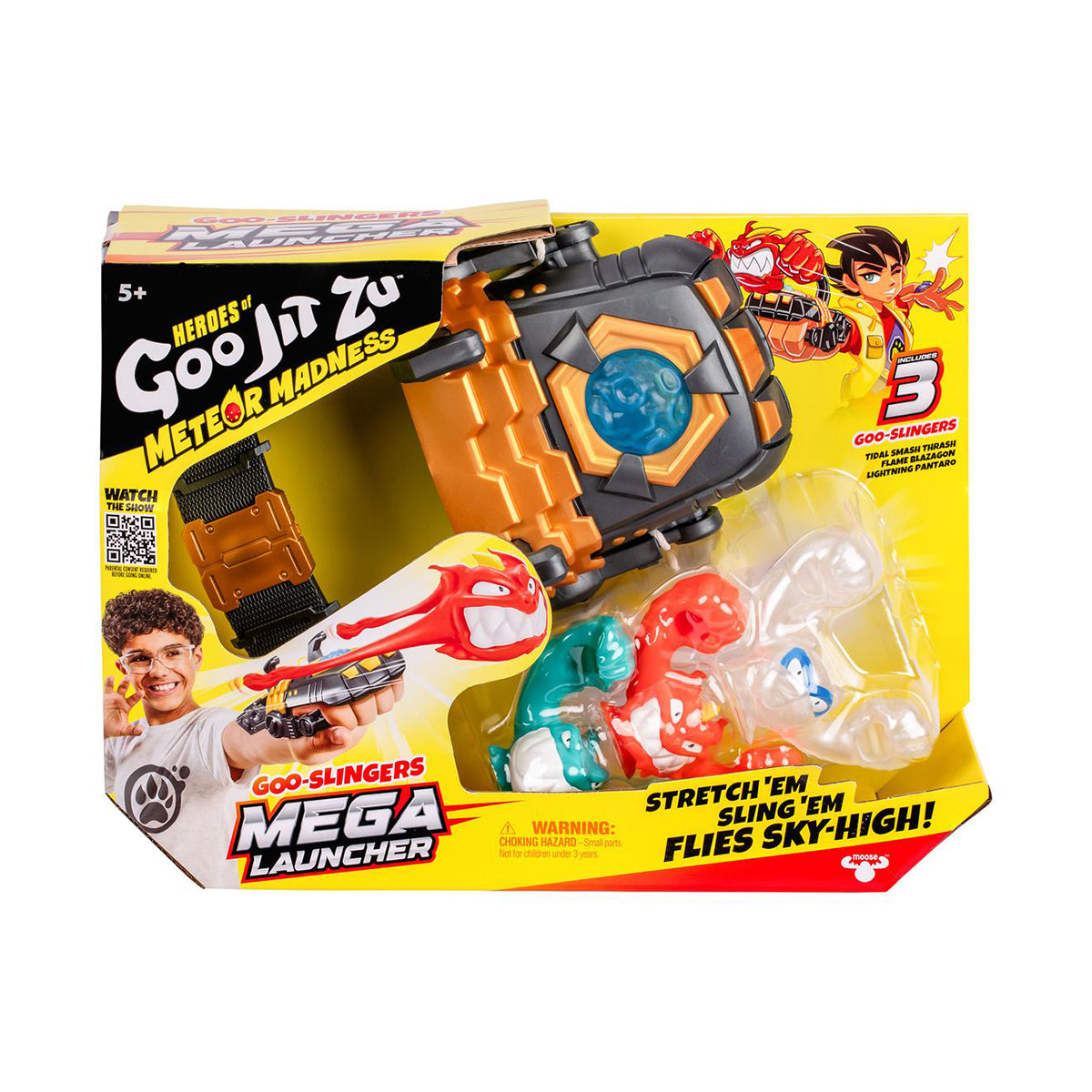 Simply load your Goo-Slingers into the Mega Launcher, stretch ‘em out, and sling ‘em sky-high! With the Mega Launcher, kids can send their favourite heroes—Blazagon, Pantaro, and Cacticus—soaring into action, using the powerful launcher to fuel their epic battles. With 31 Goo-Slingers to collect across the Meteor Madness series, the action is just beginning. The adventure doesn’t stop—Heroes of Goo Jit Zu - Goo Launcher: Load ‘Em, Stretch ‘Em, Sling ‘Em, Fly Sky-High!