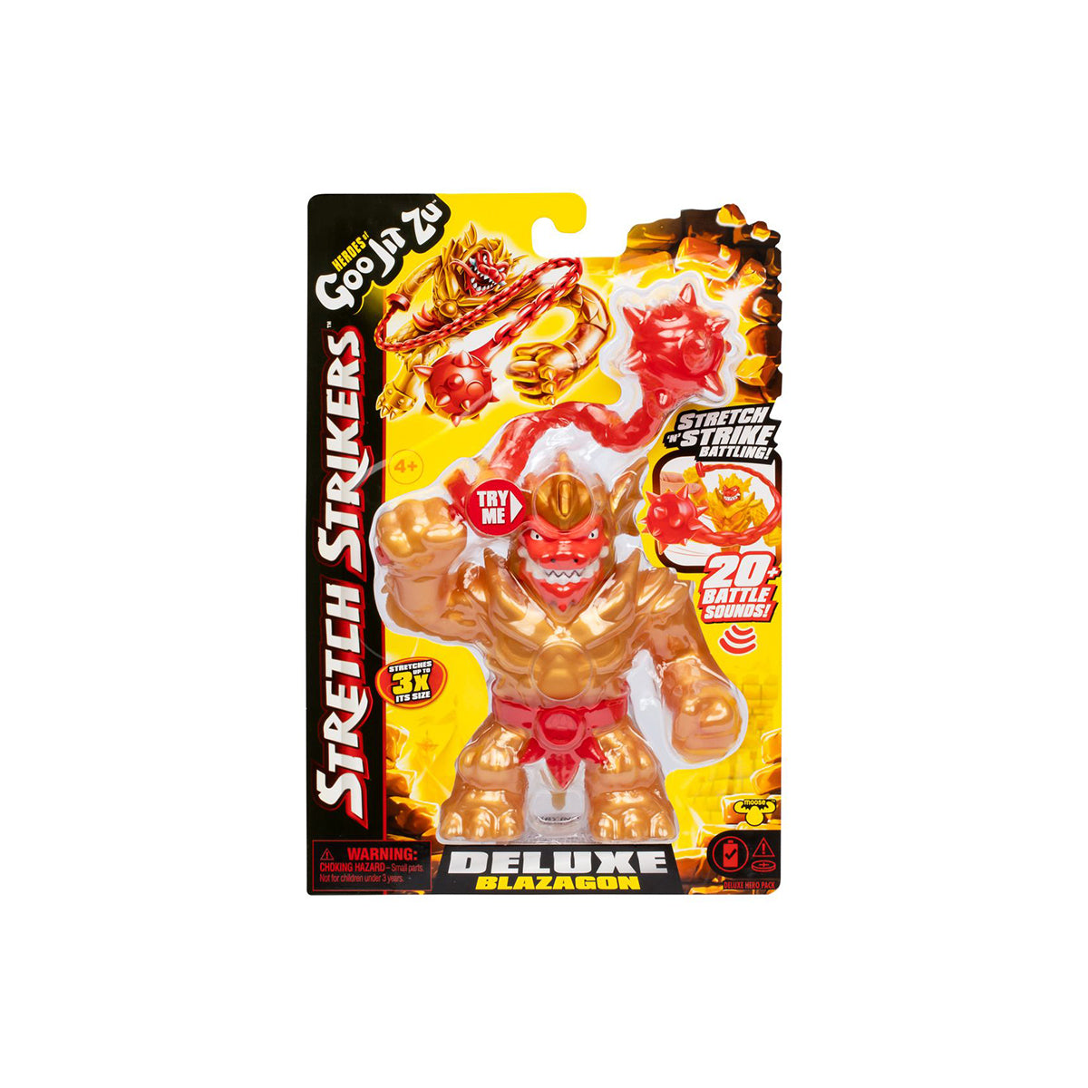 But the excitement doesn't stop there! Equipped with more than 20 battling sounds, and the ability to stretch up to three times their size, make sure to unleash an EPIC, LOUD stretch attack! Additionally, Blazagon and Rock Jaw now boast enhanced battle armor, elevating the epicness of their clashes with an additional layer of defense! Endless excitement awaits with the two DELUXE heroes Blazagon & Rock Jaw! Collect them now!